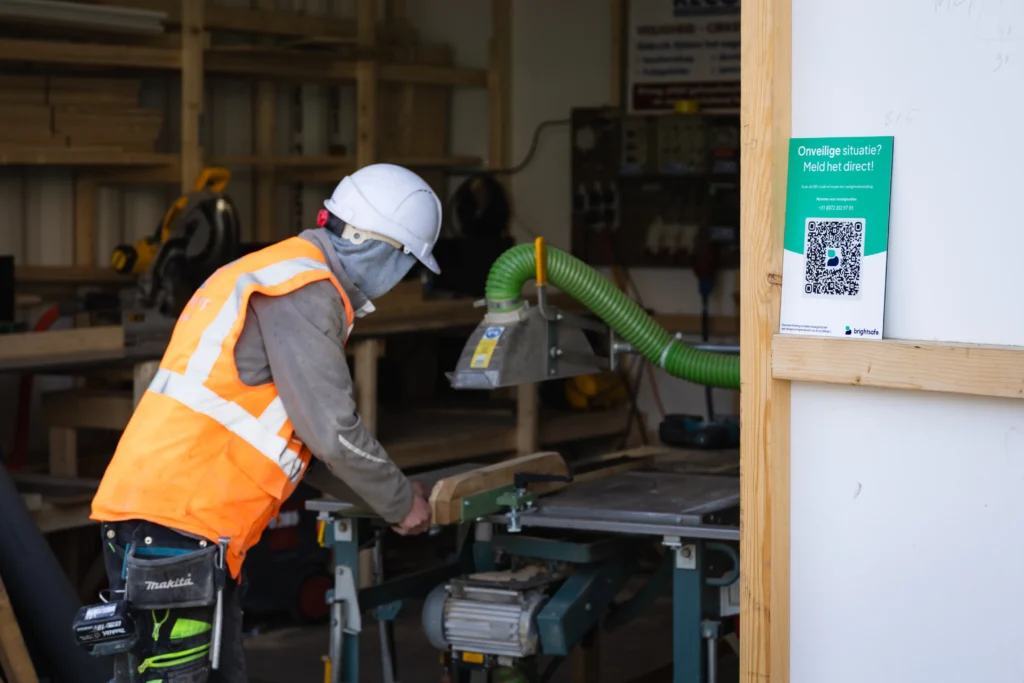 Brightsafe sluit perfect aan op de dynamiek van de bouwsector. Medewerkers scannen eenvoudig een QR-code op locatie om een melding te maken. Zonder login, zonder app. Meldingen komen direct terecht in het centrale dashboard, waar ze toegewezen, opgevolgd en afgehandeld kunnen worden.